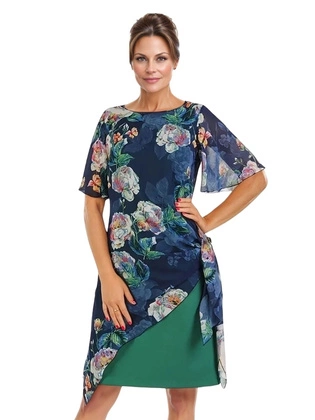 Granatowa sukienka z tulipanową, szyfonową narzutką 32780