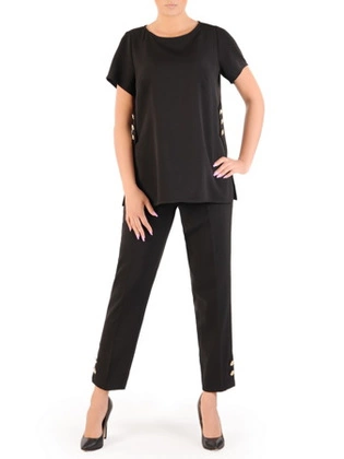 Elegancki komplet damski wykończony ozdobnymi guzikami 33683