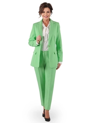 Elegancki garnitur damski, żakiet ze spodniami w zielonym kolorze 39333