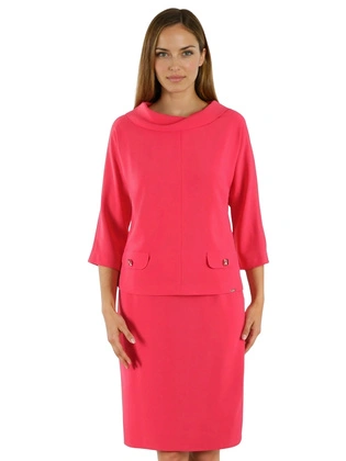 Amarantowy komplet damski, bluzka z kołnierzem i prostą spódnicą 38722