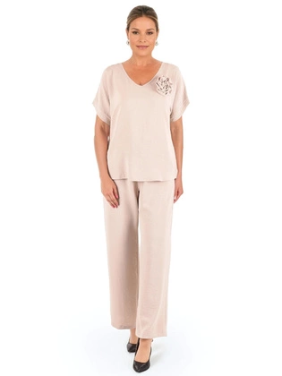 Komplet damski, elegancka, wyszczuplająca tunika z szerokimi spodniami 39257