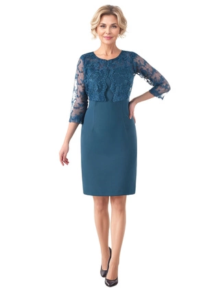 Garsonka damska, elegancki komplet na wesele, morska sukienka z krótkim, koronkowym żakietem 15334