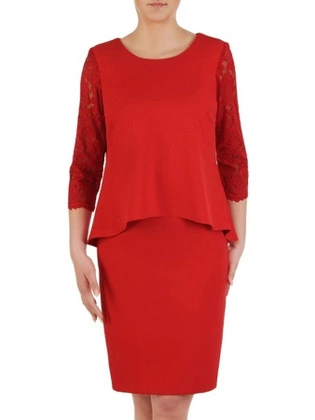 Komplet damski z tkaniny, czerwona sukienka z luźną narzutką 20572