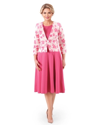Elegancki komplet, wzorzysta sukienka z gładkim żakietem 33309