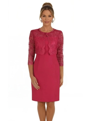 Amarantowa sukienka z krótkim, koronkowym żakietem 15047.