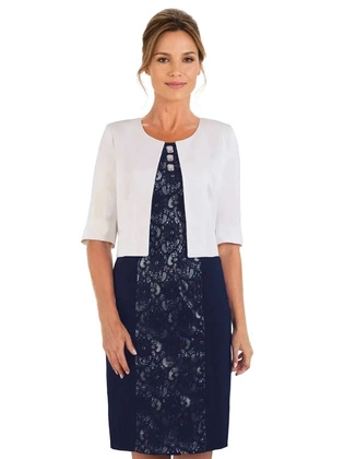 Kostium damski, prosta sukienka z koronkowym żakietem 33396