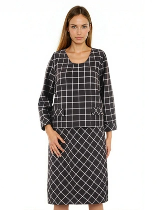 Elegancki komplet, sukienka w pepitkę z gładkim żakietem 34250