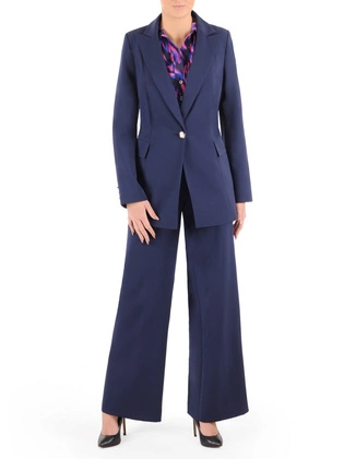 Elegancki niebieski garnitur damski – komplet z żakietem i spodniami idealny na wesele, komunię i do biura 39597