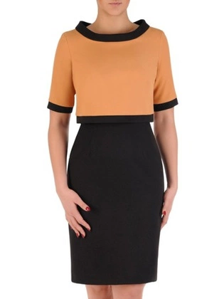 Sukienka wyszczuplająca 2w1, prosta kreacja z luźną, szyfonową narzutką 15384
