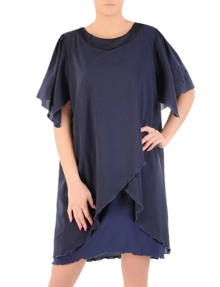 Granatowa sukienka z tulipanową, szyfonową narzutką 32780