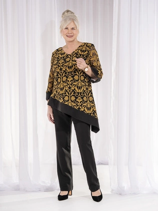Wyjściowy komplet damski, asymetryczna tunika ze spodniami 38213