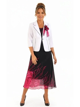 Komplet damski na wesele i komunię – rozkloszowana sukienka w kwiaty z żakardowej tkaniny i gładki żakiet 39882