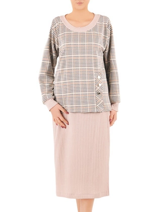Dzianinowy komplet damski, prosta spódnica z wygodną bluzką 38784