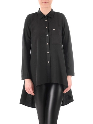 Długa, asymetryczna koszula w kolorze czarnym 35338