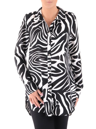 Długa, asymetryczna koszula w oryginalnym nadruku 34725
