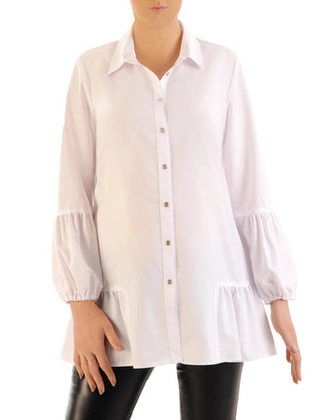 Biała, koszulowa bluzka z ozdobnymi rękawami i falbaną 34738