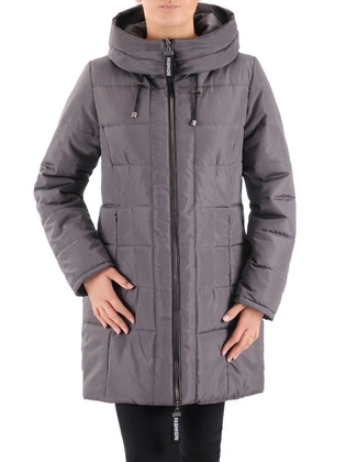 Kurtka damska zimowa, grafitowa kurtka pikowana z kapturem na zimę, duże rozmiary 38700
