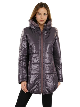 Kurtka zimowa damska, ciepła, grafitowa kurtka z pikowanej tkaniny z ozdobnym kapturem, duże rozmiary 36634
