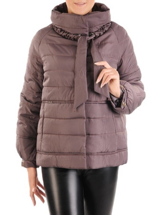 Kurtka zimowa damska, grafitowa krótka wełniana kurtka z ozdobnym kominem, duże rozmiary 34127
