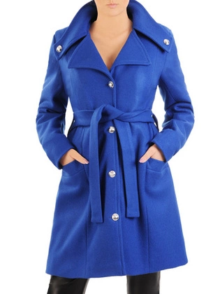 Płaszcz damski zimowy, nowoczesny chabrowy płaszcz z oryginalnym kołnierzem, boczne kieszenie, pasek, ozdobne guziki, duże rozmiary 34114