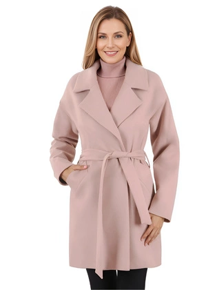 Płaszcz damski zimowy, beżowy, elegancki, klasyczny płaszcz z kołnierzem, wyszczuplające przeszycia, boczne kieszenie 27775