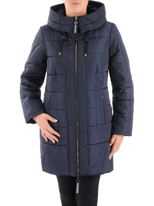 Kurtka damska zimowa, granatowa kurtka pikowana z kapturem na zimę, duże rozmiary 38698