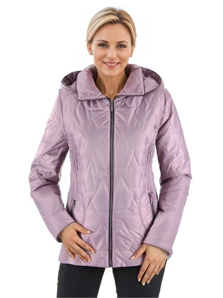 Kurtka damska, przejściowa kurtka pikowana z odpinanym kapturem w kolorze fioletowym, boczne kieszenie, duże rozmiary 37524