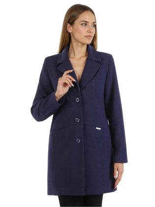 Płaszcz damski z kołnierzem, granatowy, elegancki płaszcz jesienny zapinany na guziki, duże rozmiary 27141