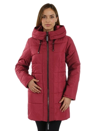 Kurtka damska zimowa, bordowa kurtka pikowana z kapturem na zimę, duże rozmiary 38692