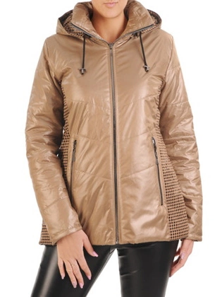 Kurtka zimowa damska, elegancka jasna kurtka pikowana z kapturem i odpinanym futerkiem, duże rozmiary 38686