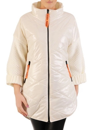 Kurtka damska przejściowa, beżowa, pikowana kurtka z wyszczuplającymi wstawkami, odpinany kaptur, boczne kieszenie 33078