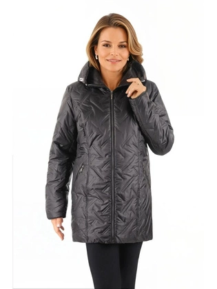 Kurtka zimowa damska, pikowana kurtka z futerkiem na zimę, szara, duże rozmiary 38737