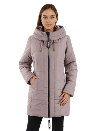 Kurtka damska zimowa, beżowa kurtka pikowana z kapturem na zimę, duże rozmiary 38697