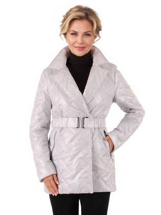 Kurtka damska przejściowa, kremowa, pikowana kurtka z kapturem, ściągacz w pasie, duże rozmiary 35344
