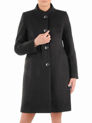 Płaszcz damski zimowy, klasyczny czarny płaszcz ze stójką zapinany na guziki 35796