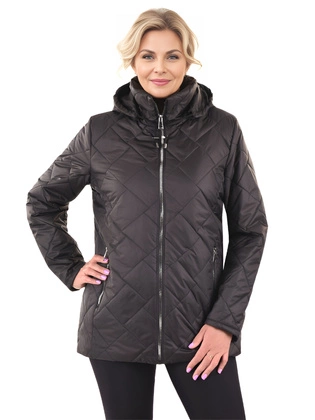 Kurtka zimowa damska, czarna, pikowana kurtka z futerkiem przy kapturze, duże rozmiary 38985