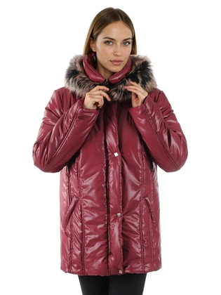 Długa brązowa kurtka damska pikowana z kapturem – klasyczna kurtka zimowa z zamkiem i stójką 40647