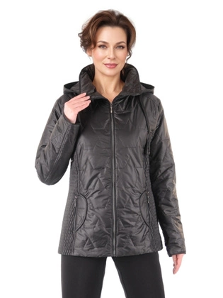 Kurtka damska na wiosnę, przejściowa kurtka pikowana z odpinanym kapturem w kolorze czarnym 39362