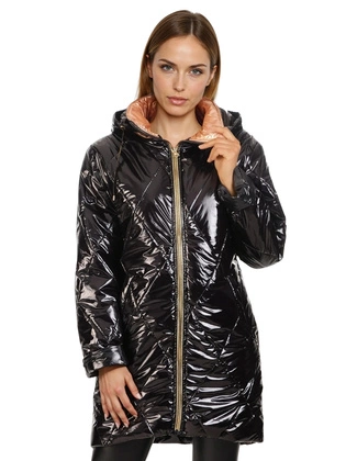 Kurtka damska przejściowa, czarna, pikowana kurtka z kapturem, boczne kieszenie, duże rozmiary 31612