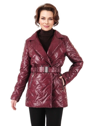 Kurtka damska przejściowa, brązowa, pikowana kurtka z kapturem, ściągacz w pasie, duże rozmiary 35259