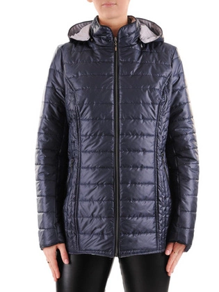 Kurtka damska, przejściowa kurtka pikowana z kapturem, granatowa, duże rozmiary 35674
