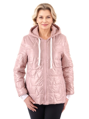 Kurtka damska, beżowa, pikowana kurtka przejściowa z wysokim kołnierzem, boczne kieszenie, duże rozmiary 35080