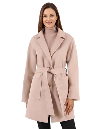 Elegancki klasyczny beżowy płaszcz damski przejściowy – modny wybór na wiosnę 39421