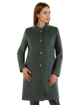 Płaszcz damski zimowy, klasyczny zielony płaszcz ze stójką zapinany na guziki 35082