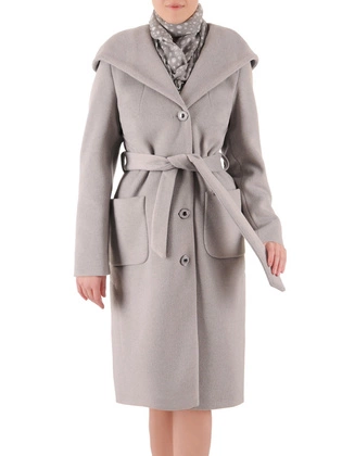 Płaszcz damski z dodatkiem wełny, przejściowy, elegancki, beżowy płaszcz z dużym wykładanym kołnierzem, boczne kieszenie 29211