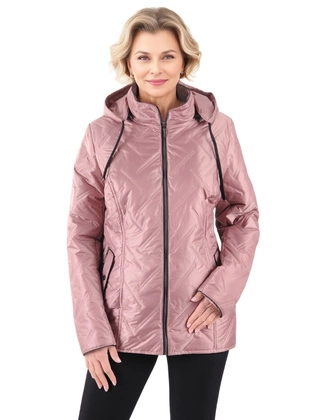 Kurtka damska przejściowa, pikowana kurtka z odpinanym kapturem w kolorze różowym 39648