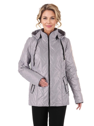 Kurtka damska przejściowa, pikowana kurtka z odpinanym kapturem w kolorze szarym 39366