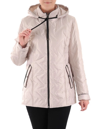 Kurtka zimowa damska, elegancka, beżowa, pikowana kurtka z ciepłym kapturem, ozdobne napy, duże rozmiary 36520