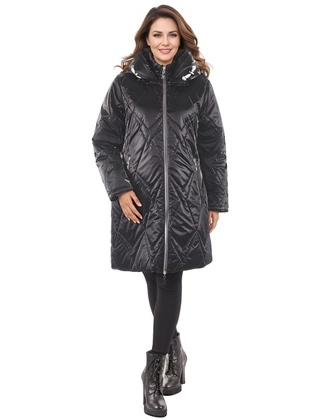 Kurtka zimowa damska, ciepła, grafitowa kurtka z pikowanej tkaniny z ozdobnym kapturem, duże rozmiary 36634