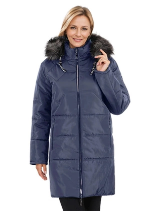 Płaszcz damski zimowy, pikowany, granatowy płaszcz ze złotymi zamkami, duże rozmiary 37743